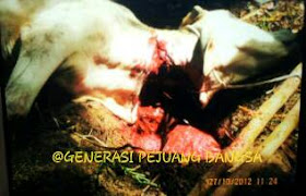 Orang lain tumbang 5-6 ekor korban senyap-senyap sahaja. Yang penting Ibadah Korban diterima oleh Allah SWT. Cuba lihat gambar di atas. Apa makna semuanya ini? Dalam melakukan Ibadat Korban pun sanggup berpolitik. Wahai orang PAS, kalau hennak menunjuk-nunjuk untuk melakukan Ibadah bukan ini caranya, cara ini sebenarnya mengundang benci Rakyat pada PAS. Sekarang Rakyat sudah dapat jawapan yang sebenarnya, bahawa PAS lah yang menggunakan Agama untuk berpolitik. Yang jadi mangsa lembu yang berdosa.